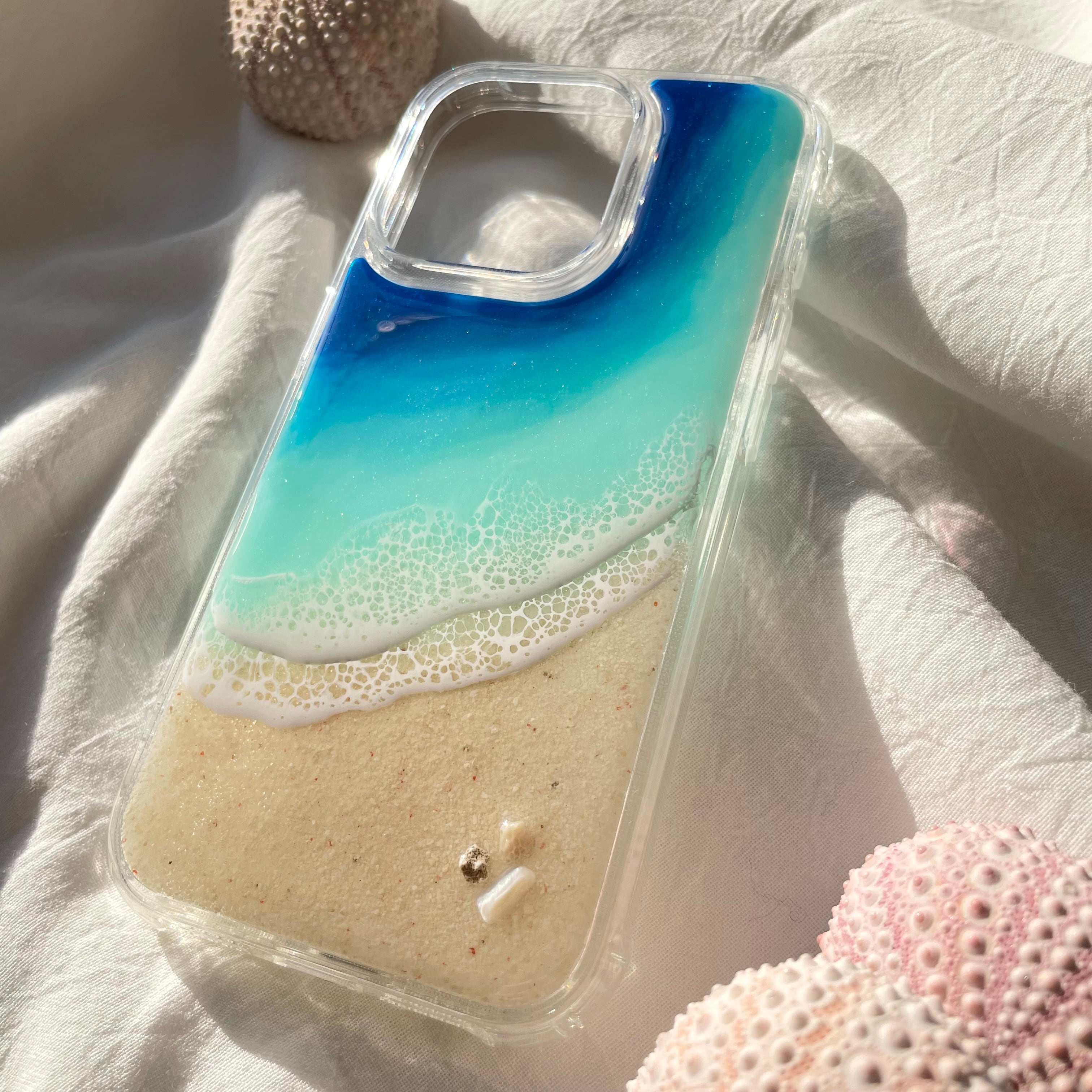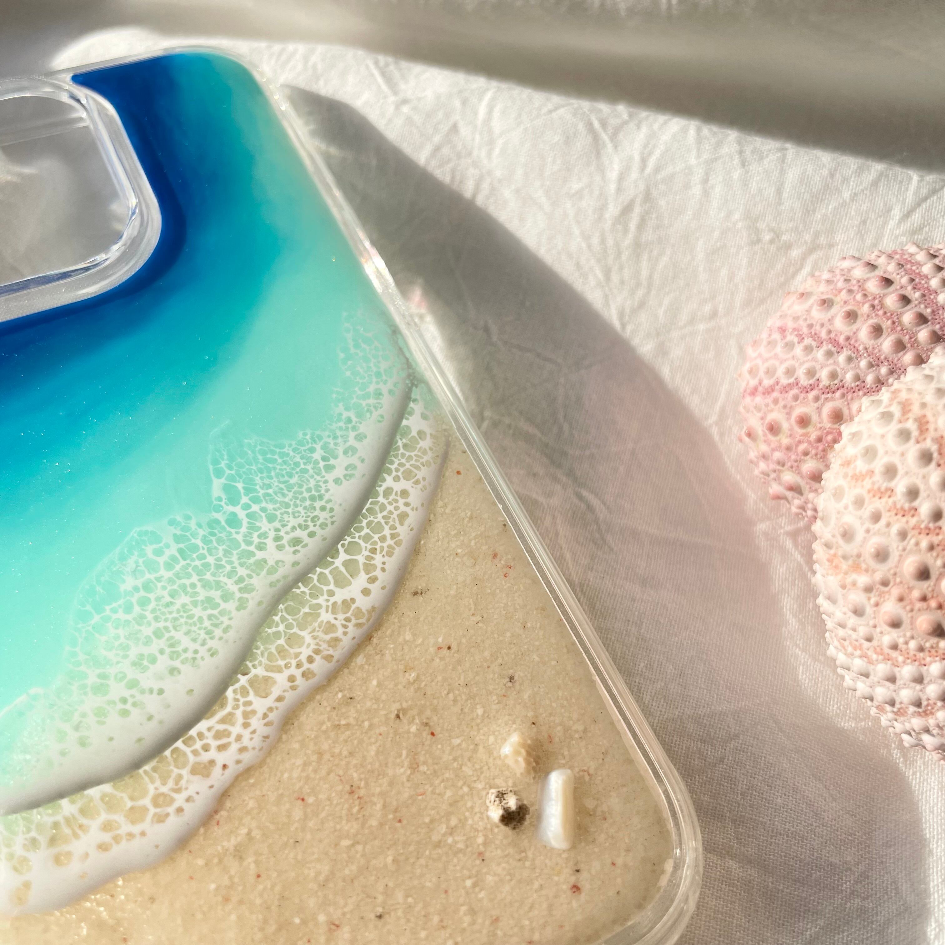 優しい波のライン、柔らかい泡、穏やかなグラデーション…天然石と珊瑚のワンポイントがアクセントとなっています。